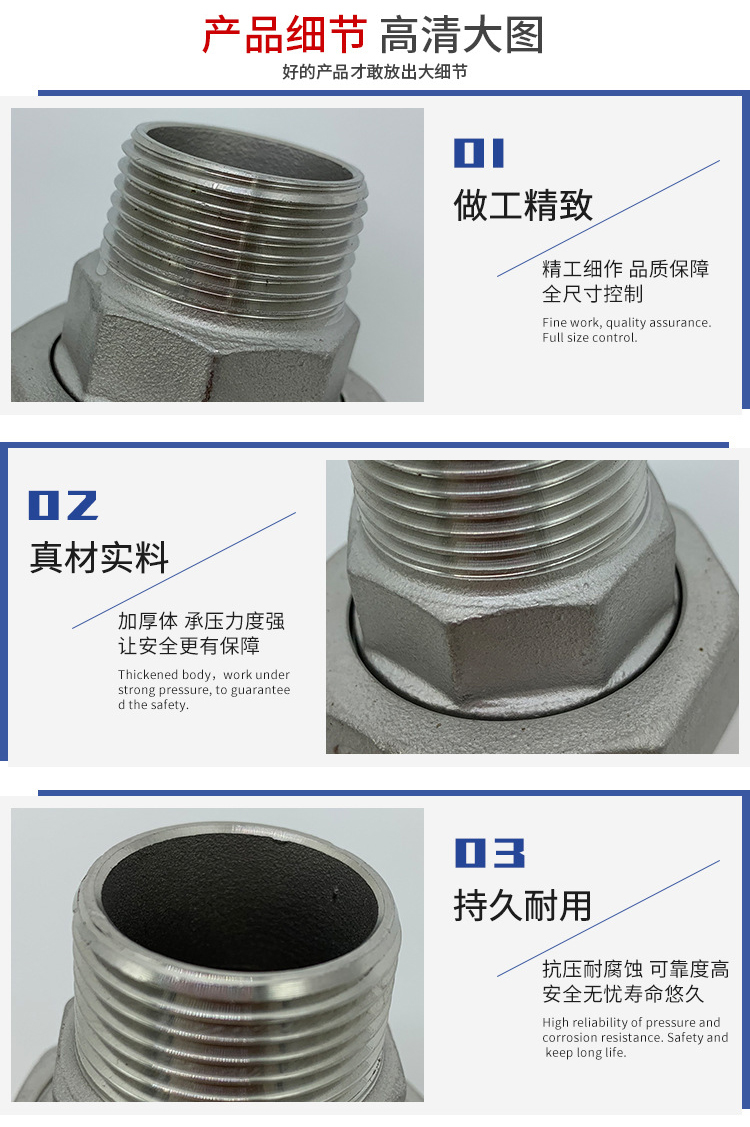 | 不(bu)鏽鋼雙頭外牙(yá)活接管件 | |