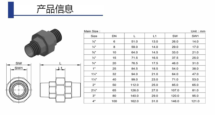 | 尺寸(cùn) | 1/8” ~ 4” |